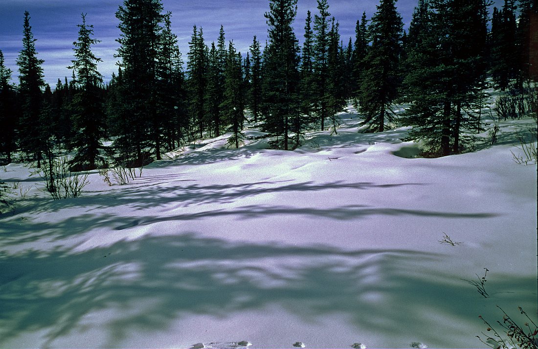 snow with spruce shadows