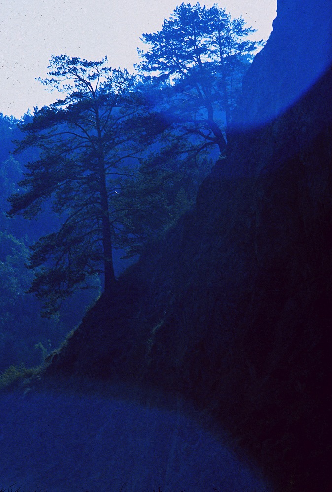 pine atop a crumbly slope.