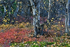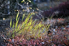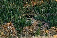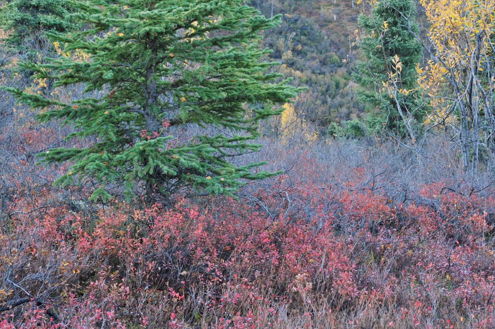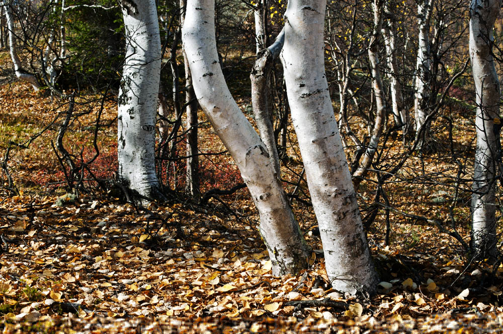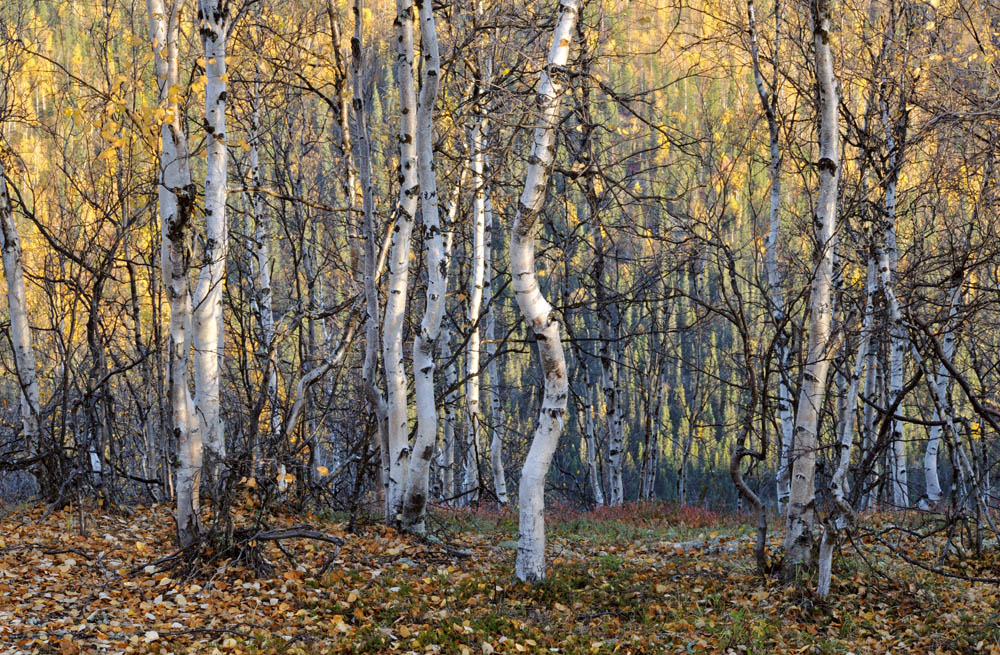 It's been my favorite camp spot since my cat and I wandered up the Eureka-Rampart trail (by car) about 2007. It is an extraordinarily photogenic place and different from any other place I've been in Alaska. There's a great example of "krivoles" here - a Russian geobotanical term that means "curvy forest", similar but not really the same as "Krumholz", referring to the bent trees, mostly birch (Betula neoalaskana), which get that way from the strong winds and winter ice blasting. What's more, there's a nice outcrop of perfect gray slate that has served me more than once as a natural photographic gray card!