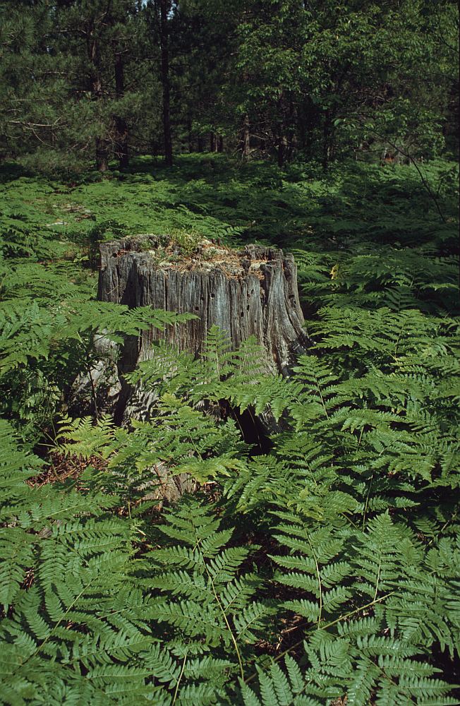 old stump and bracken ferns